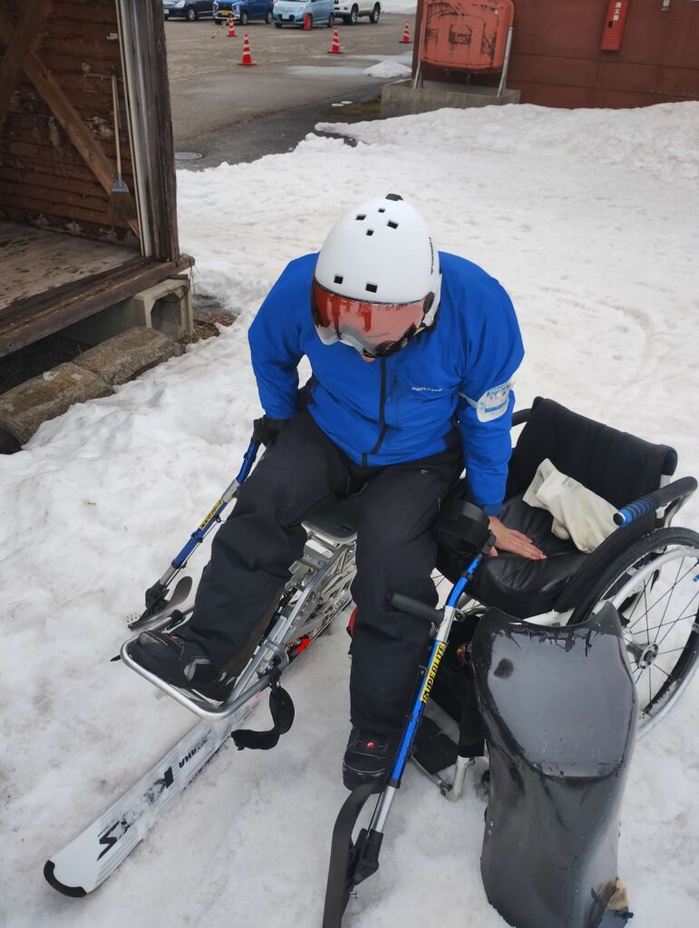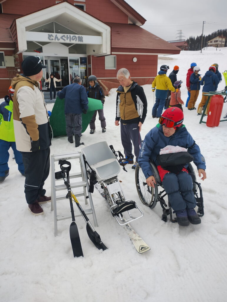 ↓教室担当の高村さんはチェアスキー。ご自分で移動、脱着ができます。