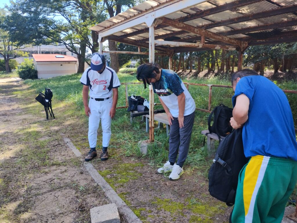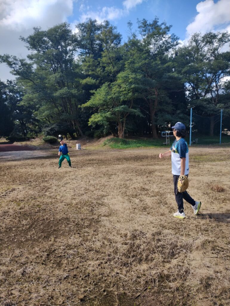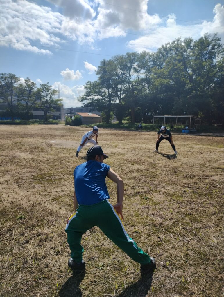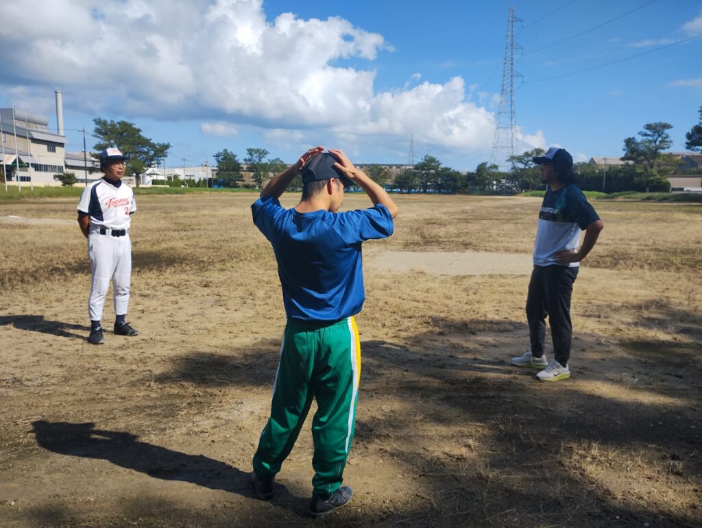 休憩を挟んで水分補給後はシートノック。取材者はファーストで送球を受けました。その後軽く話や次回の活動日などの確認をして解散。教室指導担当の薮下さんは社会福祉法人射水福祉会いみず苑(障害者支援施設)に勤務。ハキハキと大きな声で話してくださるので聞き取りやすいです。その薮下さんにお話を伺ったところ、かつては県内全域の施設対抗でソフトボール大会があり、競技人口も多く盛り上がっていたが少子高齢化の影響もあり、ここ最近は集まりが悪いのでもっと参加者が増えてほしいですね、とのこと。