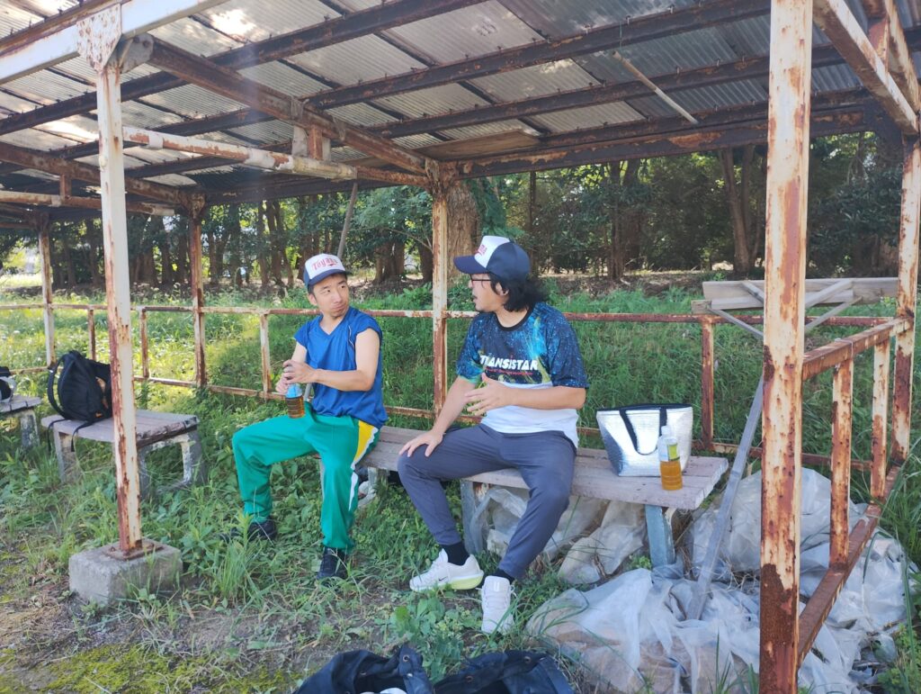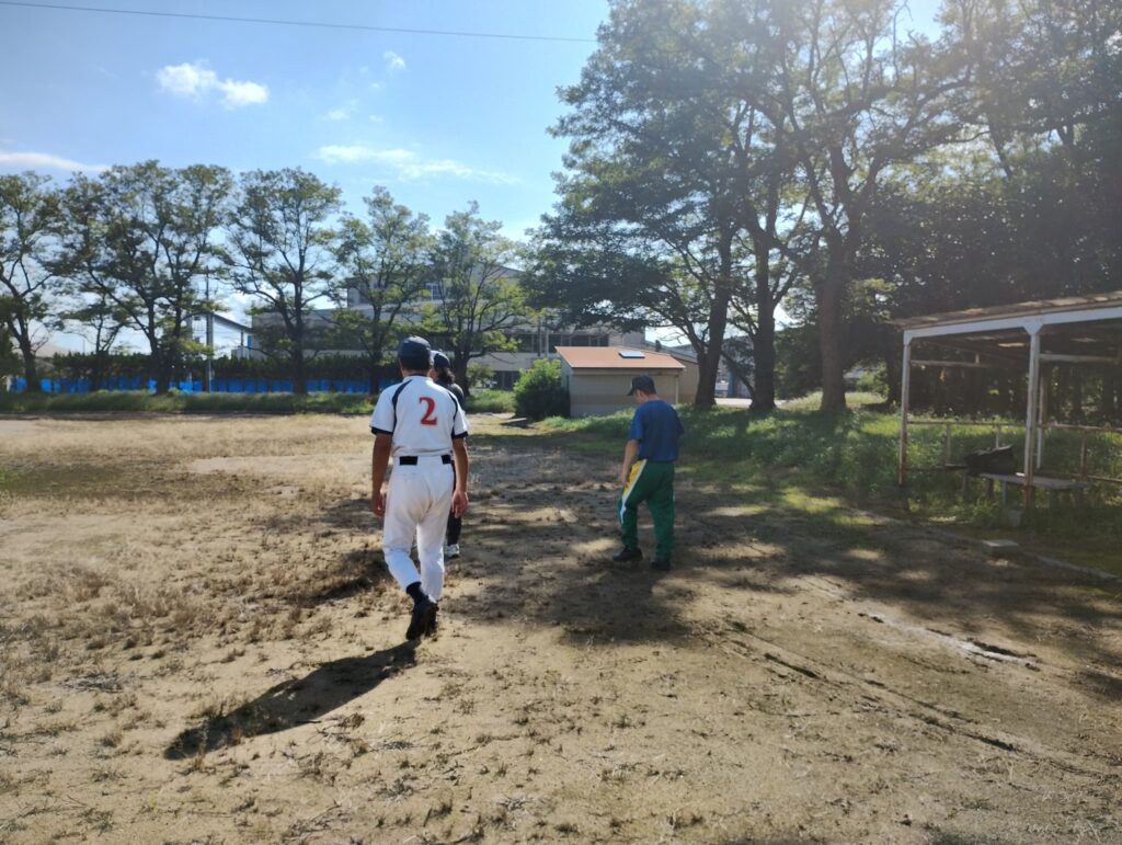 休憩を挟んでこまめに水分補給。この日の最高気温は26度と涼しかったのですが、日を遮るものが無いグラウンドでは暑く感じました。