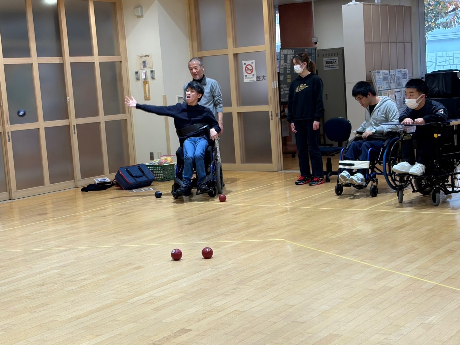 ボッチャ教室は、今年度より、ボッチャクラブから、ボッチャ教室へと変更となり、訪問したこの日は、春から第8回目に参加いたしました。